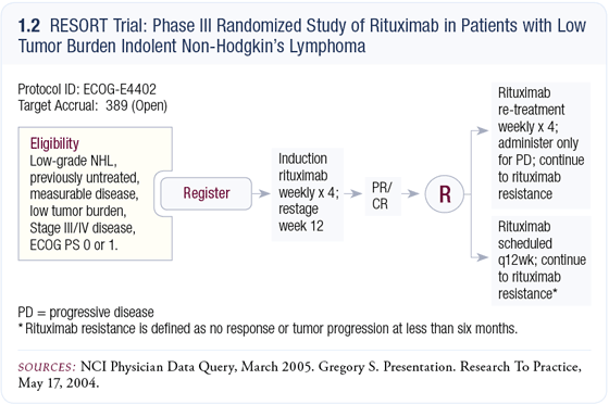 The principal investigator for the RESORT trial (1.2) is Brad Kahl, who on this issue describes the background, rationale and design for this important trial. I also conducted a separate interview with Dr Kahl specifically for patients, and we will be distributing this valuable conversation as part of a soon-to-be-launched patient audio series. The goal of this patient series is not only to provide patient education, but also improve accrual to important clinical trials like RESORT. This trial should be very appealing for both patients and physicians as it asks an important question related to a common dilemma in this disease. Both randomization arms include up-front rituximab monotherapy, which will greatly facilitate patient accrual. However, there are also other benefits to enrolling. Participants can help move the field forward and still receive one of two very commonly utilized schedules for this therapy, and at the same time know that their tumor tissue will be studied extensively to define the biologic effects of this landmark oncologic agent.